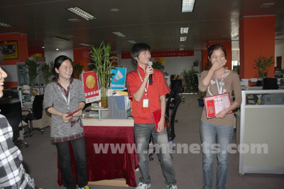 5月全體員工大會(huì)中,技術(shù)部董小釵獲得創(chuàng)新模范獎(jiǎng)。自進(jìn)公司以來董小釵一直工作出色,大膽創(chuàng)新,在程序模塊的研制上提出眾多建設(shè)