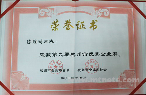 第九屆杭州市優秀企業家評選活動在市經信委的指導下,由市企聯、市企協組織圓滿完成,本次評選活動經推薦、初審、考評、公示、審定等環節,對2012年全市堅守在各行業領域努力奮斗,為杭州經濟社會發展做出了貢獻的卓越企業家進行綜合選評。杭州市經信委市場處處長蔡德全宣讀了關于表彰第九屆杭州市優秀企業家的決定,市經信委領導為優秀企業家頒獎。