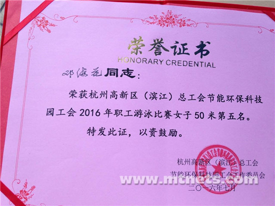 浙江是游泳大省,杭州更是出了不少游泳奧運冠軍,游泳在杭城有非常深厚的群眾基礎,一個工會游泳比賽都非常的激烈,看著部分運動員那專業(yè)的姿勢仿佛是專業(yè)的比賽。抱著重在參與心態(tài)的興旺寶運動員們也沒有空手而歸,最終獲得混合接力第五名,女子鄧海花也獲得個人50米第五名。通過工會之間的交流活動既豐富的小伙伴們的業(yè)余生活,也增強了興旺寶在企業(yè)之間的知名度。