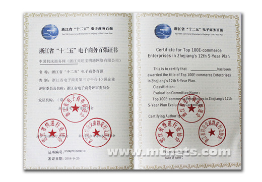 浙江省電子商務(wù)第三方平臺(tái)10強(qiáng)企業(yè)證書
