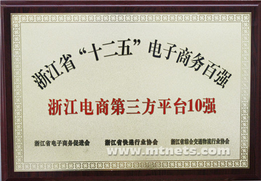 浙江省電子商務(wù)第三方平臺(tái)10強(qiáng)企業(yè)獎(jiǎng)牌