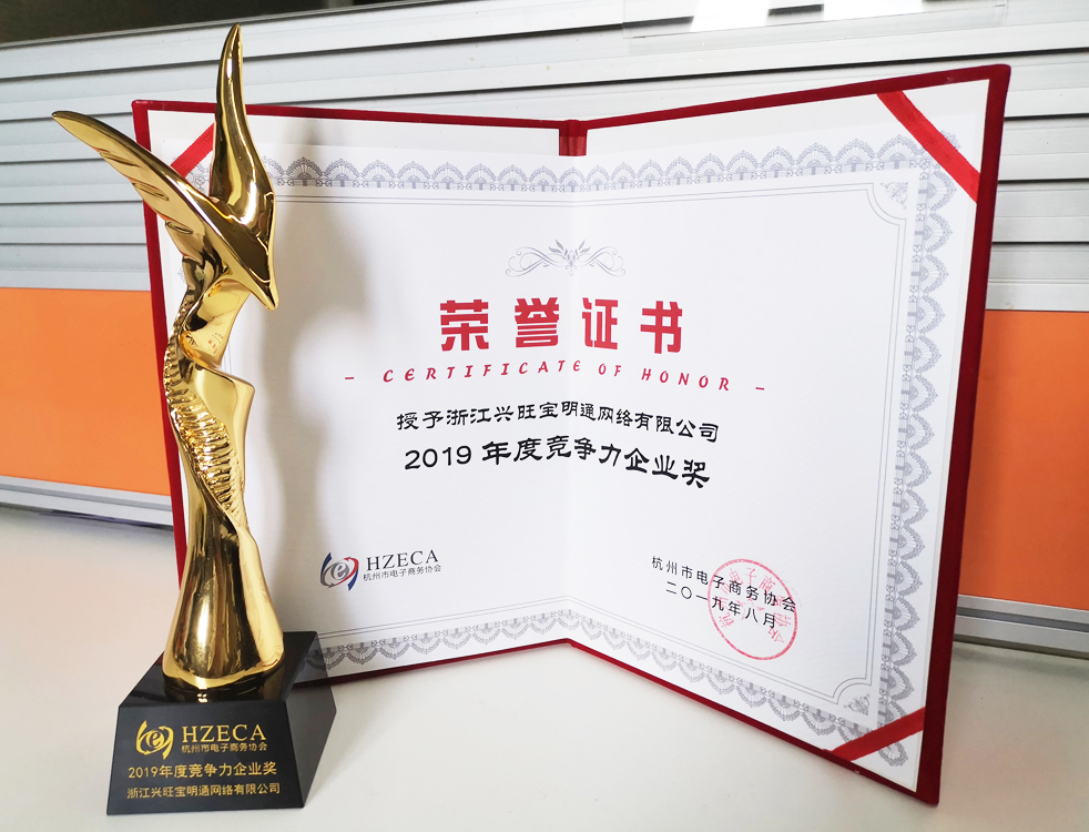 浙江興旺寶明通網絡有限公司榮獲“2019年度競爭力企業獎”