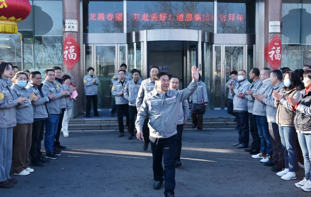 217日,大年初八,是春節(jié)后開工首日,道恩集團舉行甲辰龍年新春團拜暨開工會議。董事長、總裁于曉寧率班子成員深入總部駐地、產(chǎn)業(yè)園區(qū),向廣大干部員工送去新春的祝福和美好的祝愿,勉勵大家以飽滿的熱情、昂揚的斗志、充足的干勁高質(zhì)量完成全年各項目標任務。