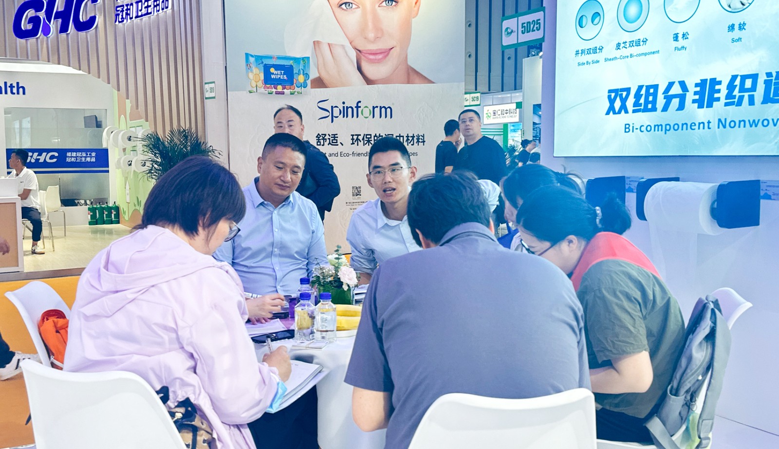 來自印度的新客戶,對17g3D液態綿+并列雙組分非織造布產生濃厚興趣,雙方進行了長達40分鐘的深度交流,并相約展后詳談合作事宜。不少海內外戰略客戶的研發和采購人員,紛紛來道恩斯維特展位探討產品技術,洽談商務合作。“我們邀請新客戶來公司實地考察,與老客戶達成增量深度合作意向,此次參展收獲滿滿!”鄒秉桓總經理說。