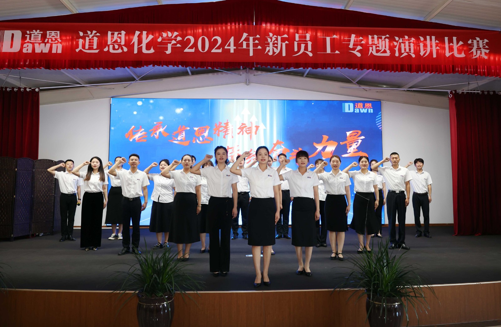“我是道恩人,代表道恩形象,肩負道恩使命……”6月29日,在主題為“傳承道恩精神 接續(xù)奮斗力量”的道恩化學2024年新員工專題演講比賽現(xiàn)場,20位道恩新青年高舉右手,握緊拳頭,莊嚴宣誓,句句誓言擲地有聲。“我們將在工作中不忘初心、牢記使命,時刻嚴格要求自己,以實際行動兌現(xiàn)對道恩的莊嚴承諾。”