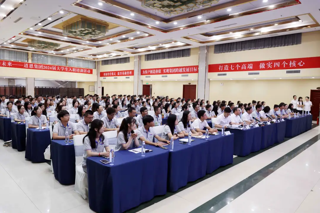 “風(fēng)在吼,馬在叫,黃河在咆哮……萬(wàn)山叢中,抗日英雄真不少!青紗帳里,游擊健兒逞英豪!”7月24日晚,由大學(xué)生新員工合唱的《保衛(wèi)黃河》,把主題為“攜手同行,奔赴未來(lái)”的道恩集團(tuán)2024屆大學(xué)生入職晚宴推向高潮。這標(biāo)志著170名新入職大學(xué)生歷經(jīng)20余天的訓(xùn)練和學(xué)習(xí),圓滿完成各項(xiàng)集訓(xùn)任務(wù),奔赴全國(guó)各地的工作崗位,以青春奮斗之姿奔赴更加美好的未來(lái)。