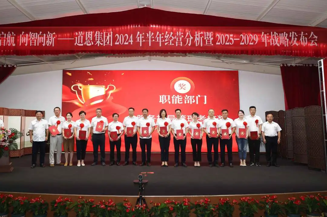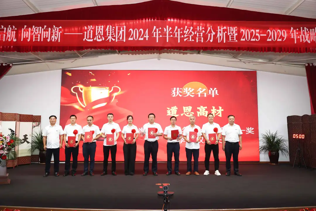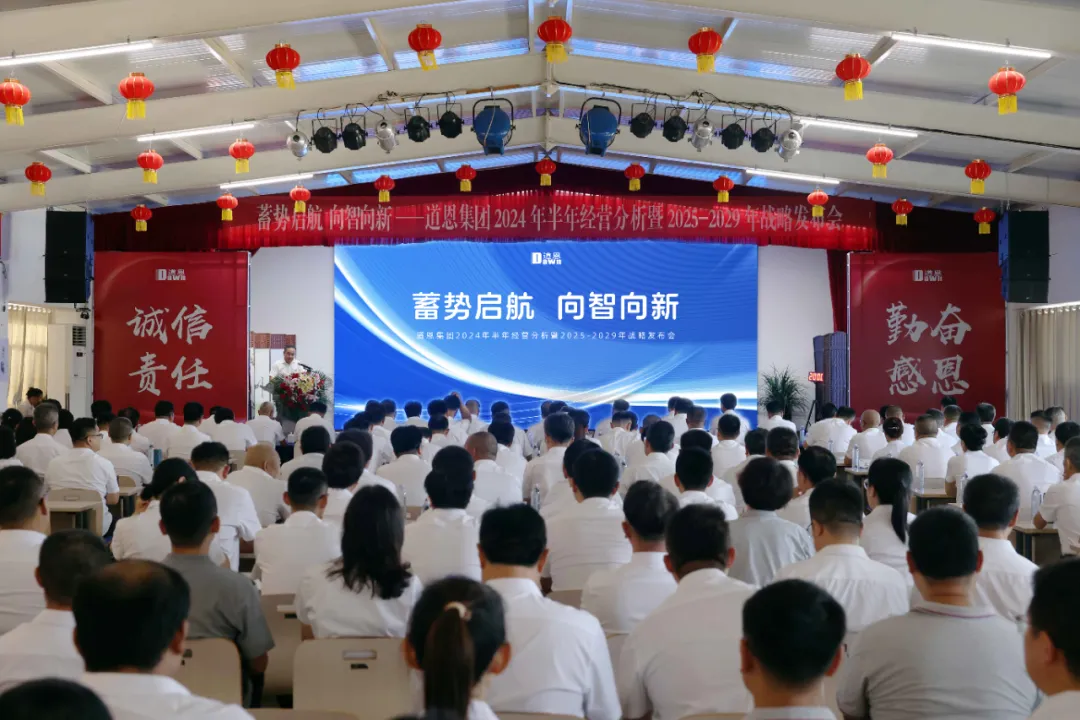 8月3日,道恩集團在道恩商學院召開主題為“蓄勢啟航 向智向新”的2024年半年經營分析暨2025-2029年戰略發布會,旨在總結經驗、分析問題、表彰先進、鼓舞干勁,助推企業數智化轉型,以新質生產力強勁推動高質量發展。道恩集團董事長、總裁于曉寧出席會議并講話,集團公司董事會成員、領導班子成員、各職能部門副部級以上干部、各經營單位總監級以上干部、青干班成員參加會議。