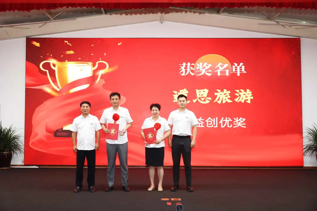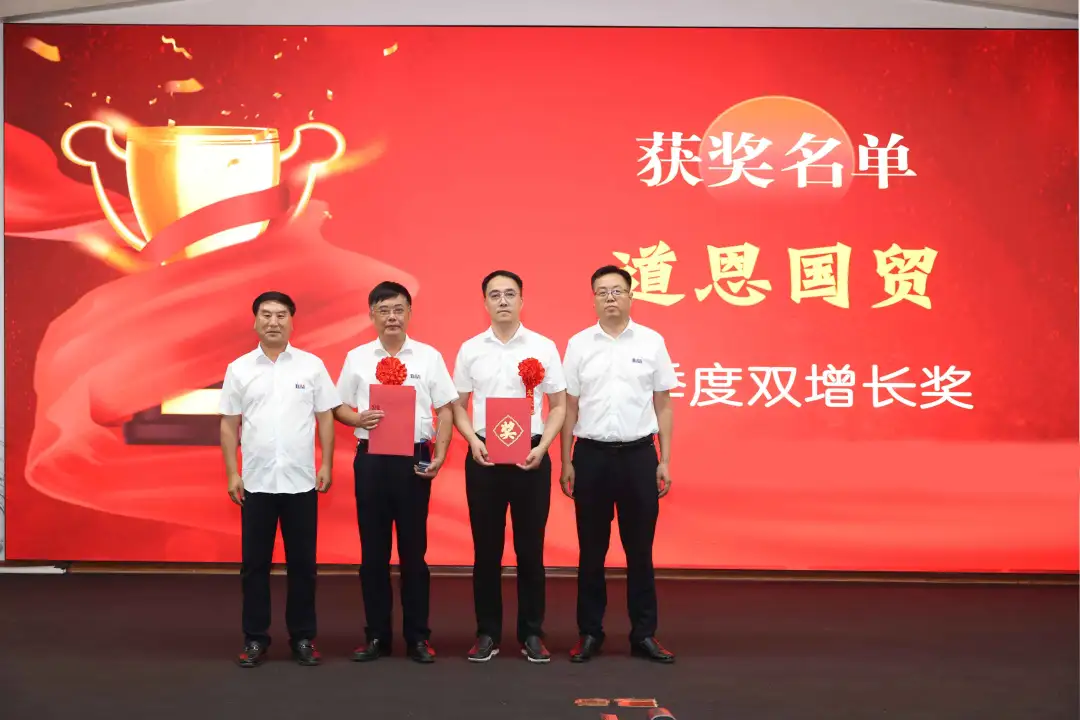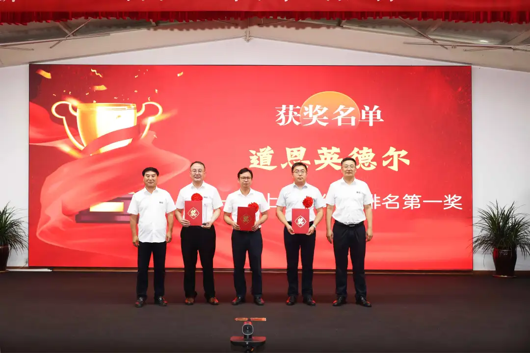會議公布了安全生產活動月優勝獎、6月業績激勵獎、效益創優獎,雙增長獎、扭虧增盈獎、綜合排名第一獎、服務指導管理考核獎。道恩股份母公司、道恩盛融小貸公司、道恩英德爾公司、雙龍化工公司榮獲上半年綜合排名第一獎。