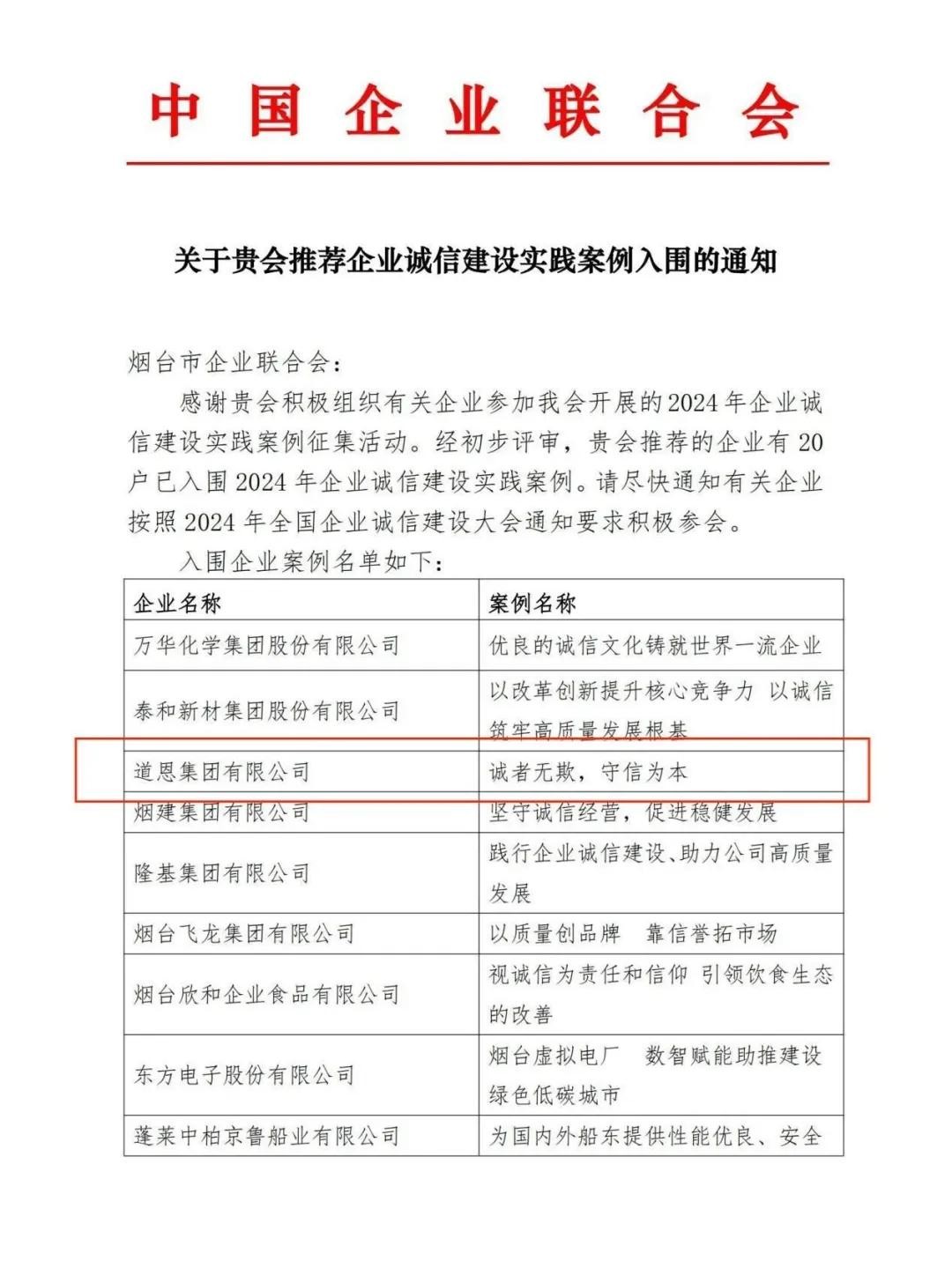 10月29日,在山東煙臺(tái)舉行的2024年全國(guó)企業(yè)誠(chéng)信建設(shè)大會(huì)上,道恩集團(tuán)提報(bào)的“誠(chéng)者無(wú)欺,守信為本”案例,入選 2024 年企業(yè)誠(chéng)信建設(shè)優(yōu)秀實(shí)踐案例,道恩集團(tuán)副總裁王永放應(yīng)邀出席大會(huì)并作誠(chéng)信建設(shè)經(jīng)驗(yàn)分享。