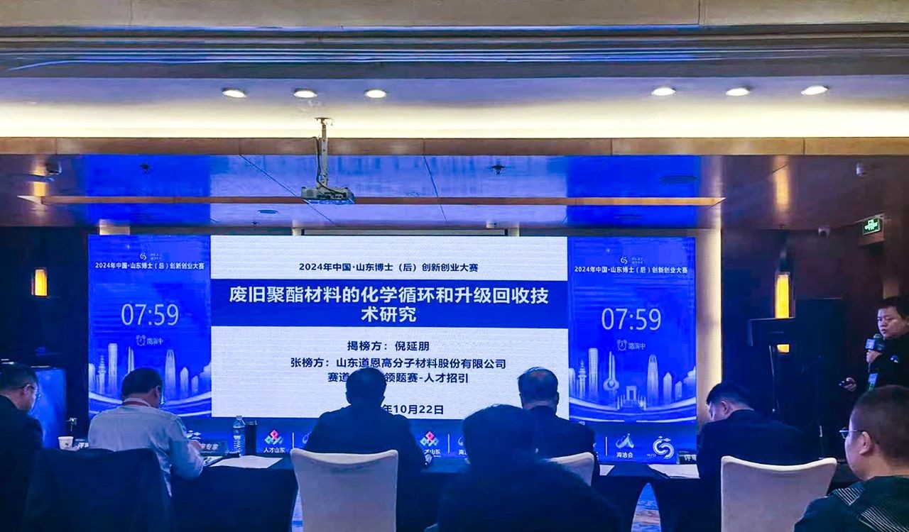 1125日,2024年中國·山東博士(后)創新創業大賽的獲獎名單出爐,道恩集團特聘專家、青島大學教授倪延朋博士的《廢舊聚酯材料的化學循環和升級回收技術研究》項目,獲得揭榜領題人才招引賽道新能源新材料領域銀獎。這是繼2023年中國·山東博士后創新創業大賽中,道恩集團博士后科研工作站在站博士后郝艷平的《全生物降解地膜專用材料的開發與應用》項目獲得銅獎后,道恩再次獲得該項賽事殊榮。