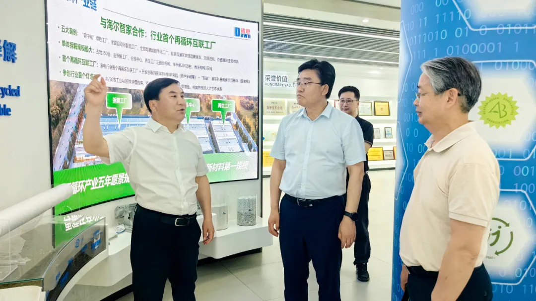 在道恩集團總部一樓大廳,北京化工大學學生處、招生辦公室負責人聽取了有關企業發展、科技創新、行業地位及社會責任等情況介紹。在龍口市(道恩)新材料科技產業園,客人實地考察道恩產業鏈、產品鏈和企業鏈打造及園區建設情況。在于曉寧董事長的陪同下,宋來新書記走進道恩新材料展示中心,仔細了解產業布局、鏈式運作及產學研用合作結出的成果。