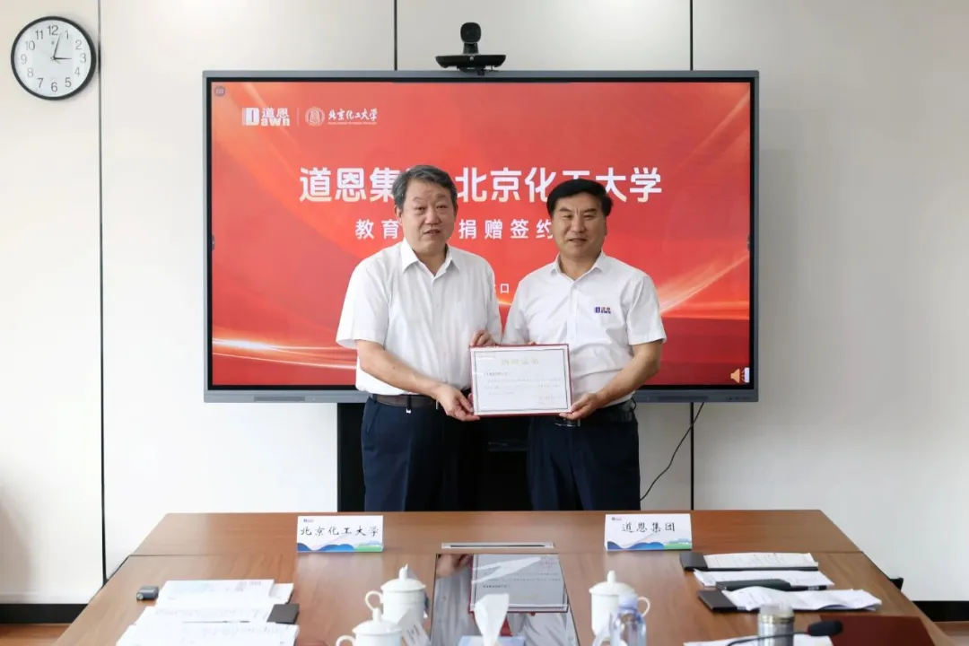 據介紹,道恩集團與北京化工大學開展校企合作20多年來,發揮各自優勢,打通了“產學研用”一體化協同創新通道,成為校企合作的典范。道恩集團在北京化工大學設立道恩高分子專項獎學金,2017年,道恩集團向北京化工大學捐贈1千萬元,北化“道恩樓”正式誕生;2024年再次捐贈1千萬元,推動“創新北化”建設。