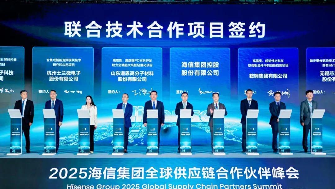 據介紹,海信集團全球供應鏈合作伙伴峰會,以“智鏈全球,韌性共生”為主題,重點聚焦低碳創新與全球供應鏈協同,強調智能化與供應鏈韌性建設。海信集團黨委書記、董事長賈少謙出席會議,海信空氣產業(籌)總裁殷必彤共同參加簽約儀式,超4500家供應鏈伙伴參與全球協同。