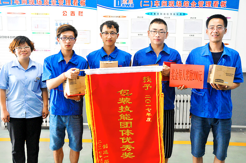 來(lái)自6個(gè)班組的24名包裝工報(bào)名參加比武,涵蓋噴碼、打印標(biāo)簽、稱量封口、標(biāo)準(zhǔn)包碼垛等4個(gè)項(xiàng)目。比武中,以質(zhì)量和時(shí)間為標(biāo)準(zhǔn),選手們爭(zhēng)分奪秒,全身心投入。經(jīng)過(guò)一個(gè)半小時(shí)的激烈角逐,包裝B班王德偉、郭磊、寇成男分別獲得噴碼、打印標(biāo)簽和稱量封口一等獎(jiǎng),包裝E班劉璐獲得標(biāo)準(zhǔn)包碼垛一等獎(jiǎng)。同時(shí),包裝B班獲得“包裝技能團(tuán)體優(yōu)秀獎(jiǎng)”。