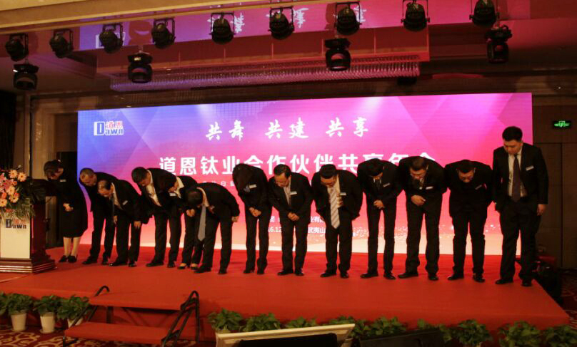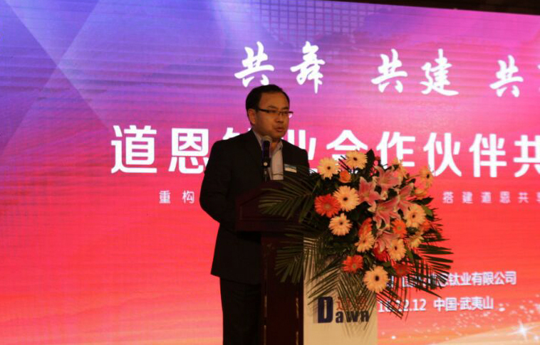12月12日,主題為“共舞·共建·共享”的2016年道恩鈦業(yè)合作伙伴共贏年會在福建武夷山舉行,來自全國各地的31家合作伙伴歡聚一堂,共襄盛舉。道恩集團(tuán)董事長、總裁于曉寧出席會議,與合作伙伴共同見證2016年取得的碩果,共同商議2017年發(fā)展大計(jì),共同分享一場高規(guī)格、新思維的行業(yè)饕餮盛宴。