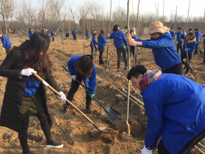 是日上午8時許,參加植樹活動的員工們興致勃勃地拿著工具,趕往植樹點。到達現場后,大家迅速行動起來,扶苗、培土、踩實、澆水,團結協作,分工明確,在不到兩個小時的時間里,圓滿完成了近2000棵法國梧桐樹苗的栽種任務。