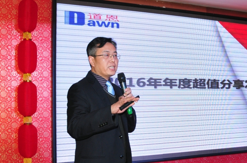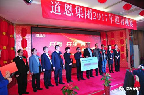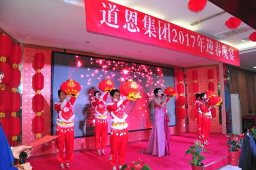1月18日晚,主題為“共舞·共建·共享——感恩、超越”的道恩集團(tuán)2017年迎春晚宴,在道恩湖畔酒店二樓多功能廳隆重舉行,集團(tuán)公司董事長(zhǎng)于曉寧、總裁索延輝出席晚宴,正科長(zhǎng)以上干部200余人參加晚宴。