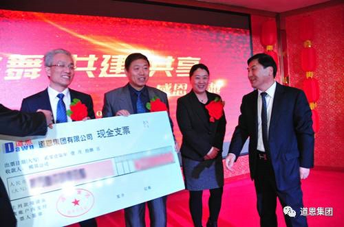 宴會(huì)在開場(chǎng)舞《大地飛歌》中拉開帷幕。晚宴上,大家共同觀看了“共舞·共建·共享——感恩、超越”超值分享短片,通過視頻領(lǐng)略9個(gè)超值分享獲獎(jiǎng)單位的風(fēng)采。獲獎(jiǎng)單位和職能部門分別上臺(tái)亮相,以高昂的士氣展示感恩文化,詮釋超值分享激勵(lì)機(jī)制帶來的喜人變化,彰顯道恩人嶄新的精神風(fēng)貌。集團(tuán)公司領(lǐng)導(dǎo)為獲獎(jiǎng)單位和職能部門頒發(fā)獎(jiǎng)金,并合影留念。