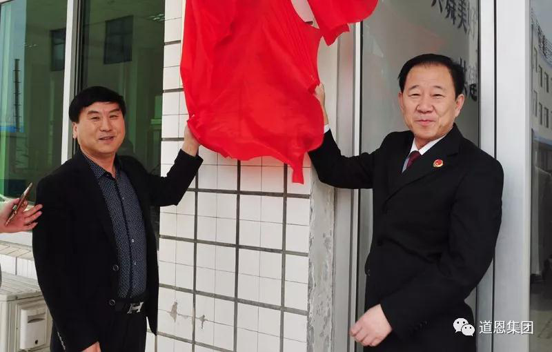 龍口市人民檢察院副檢察長(zhǎng)孫吉連(右)與集團(tuán)公司董事長(zhǎng)于曉寧為基地揭牌