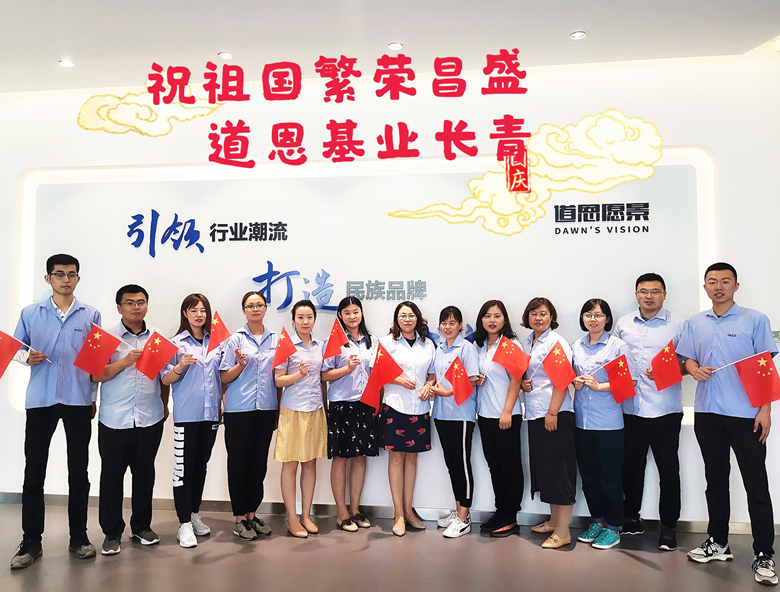 70年崢嶸歲月,70年方興未艾。我們偉大的祖國即將步入新的征程。新時代是奮斗者的時代,全體道恩人將堅定信念跟黨走,朝著“引領(lǐng)行業(yè)潮流、打造民族品牌、成就百年道恩”的愿景闊步前進(jìn)。