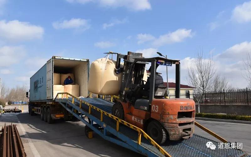 2月5日上午,三輛滿載聚丙烯原料的集裝箱貨車(chē)駛?cè)氲蓝鞴煞輳S區(qū),這標(biāo)志著此次定制的1300噸聚丙烯原料,首批貨物順利抵達(dá),以最大限度滿足口罩布聚丙烯熔噴專(zhuān)用料生產(chǎn)需求。