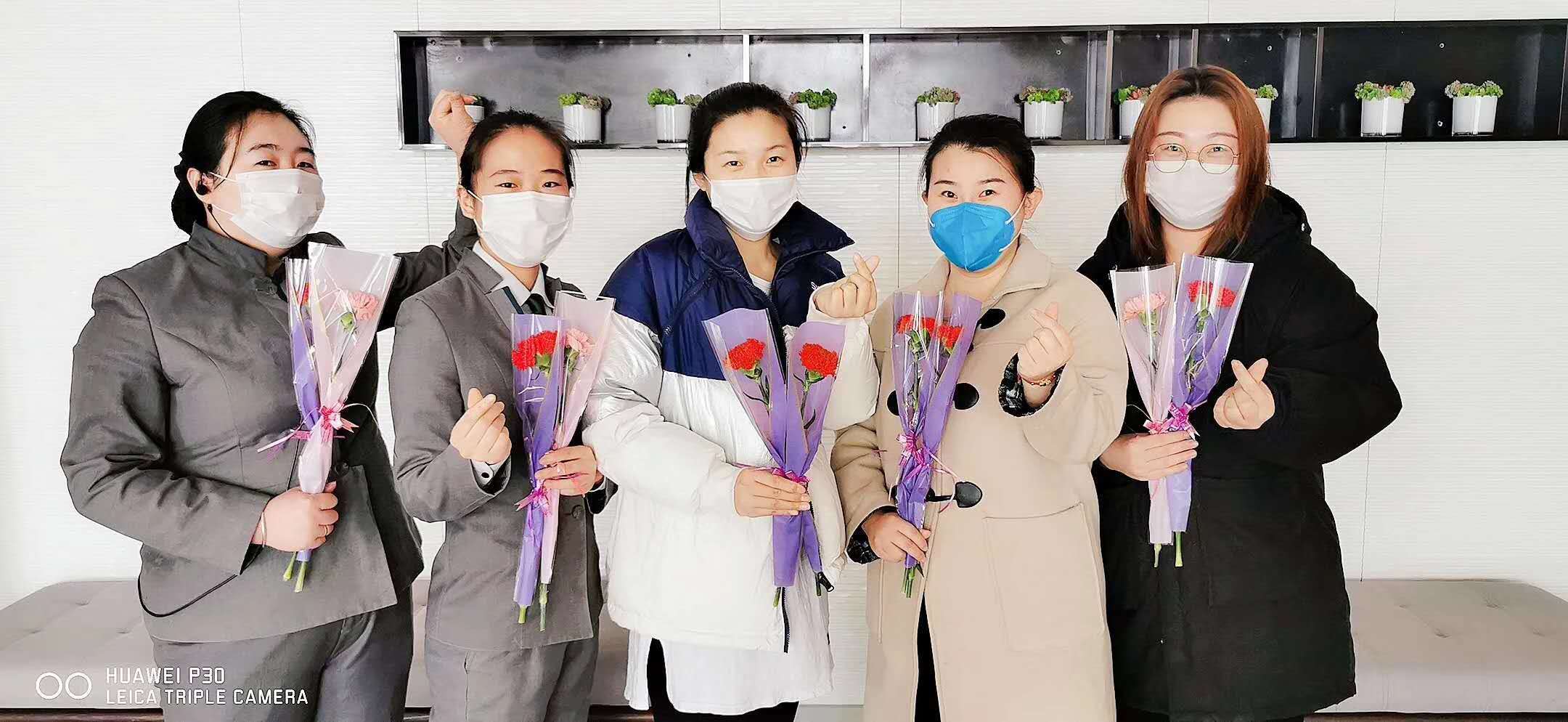 節日前夕,從集團公司總部到各職能部門,再到各經營單位,管理層親手把禮物送到女員工的手中,把深情的祝福送到大家心坎上。潤禾公司還組織了女員工座談會,對大家表示慰問和祝福。“鮮花祝福你們永遠年輕,口罩寓意大家身體健康,山楂預示著紅紅火火的未來,祝大家‘女神節’快樂!”道恩集團副總裁王永放親切的話語,讓女員工感到春天般的溫暖。
