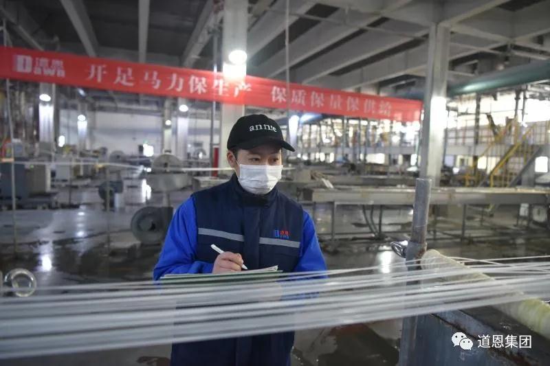 感謝信的背后,是道恩人同心戰“疫”保供應的故事。庚子之春,新冠肺炎疫情突如其來,口罩持續告急。作為口罩布聚丙烯熔噴專用料的主要生產企業,道恩股份大年初二就提前復工,緊急召回已經放假的員工,每天24小時滿負荷生產。當時,受疫情影響,外地員工無法按時到崗。“原本8小時的工作時間,經常會延長到12個小時,有時甚至更長些。”道恩股份制造一部主管田甜說,“即便如此,大家都沒有絲毫怨言,一切為了確保熔噴料供應。”