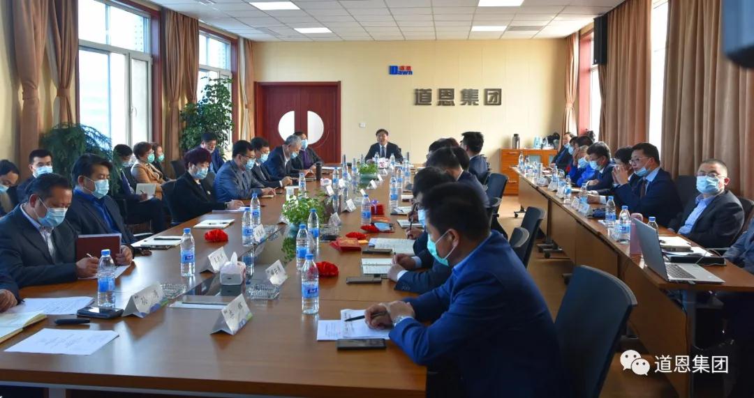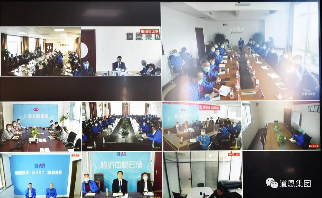 會議在道恩集團總部設主會場,在上海、青島、煙臺、臨沂、重慶等地設8個分會場,道恩集團董事長于曉寧、總裁索延輝出席會議并講話,道恩集團領導班子成員及各職能部門、經營單位副部級以上干部參加視頻會議。