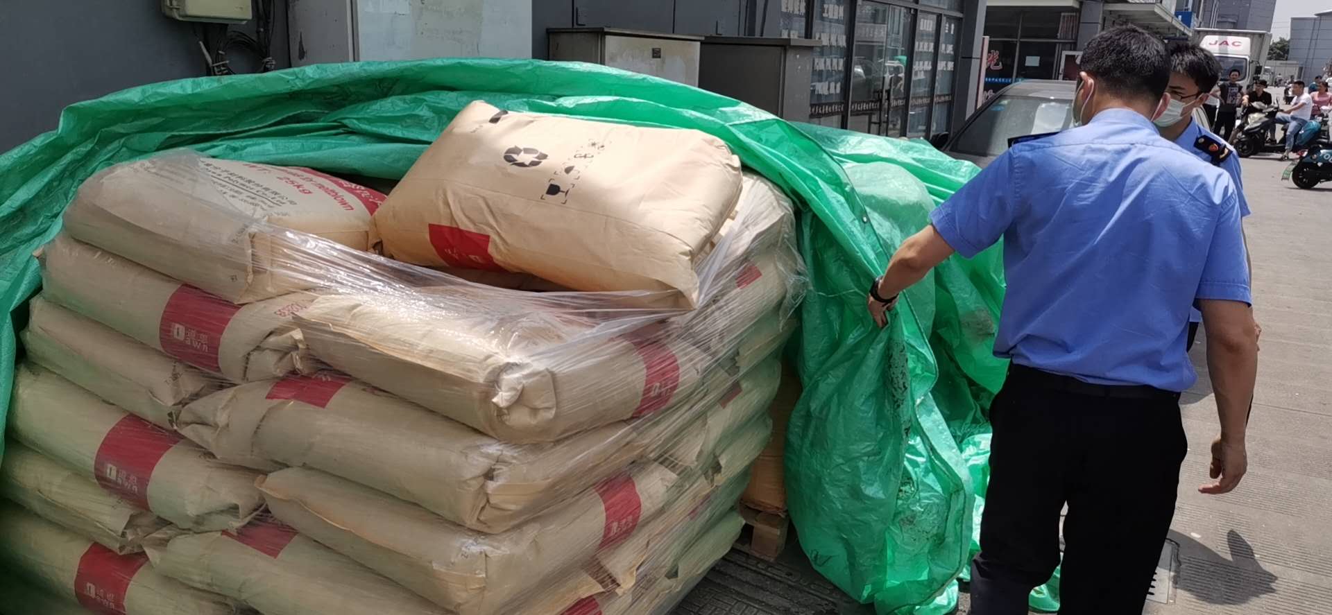 接到舉報后,道恩打假小組當即追蹤假貨源頭,及時聯(lián)系當?shù)卣嚓P執(zhí)法部門聯(lián)合行動。5月13日,道恩打假小組與平湖市政府部門相關執(zhí)法人員一同前往現(xiàn)場。經(jīng)現(xiàn)場檢查,認定被查獲的“道恩”牌聚丙烯熔噴專用料為涉嫌商標侵權的產(chǎn)品,當場查扣涉嫌侵權聚丙烯熔噴專用料7噸,涉案貨值約70萬元。