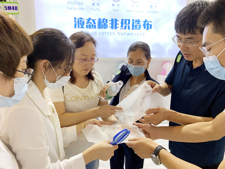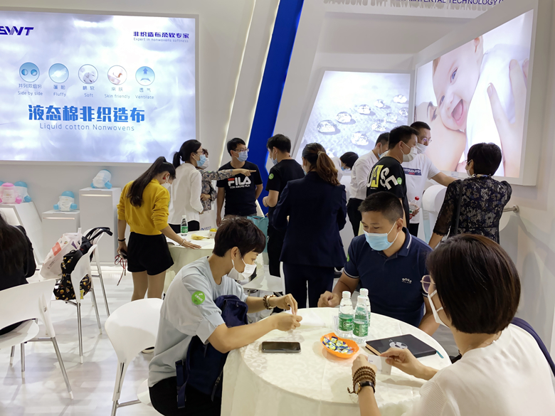 生活展助企業與新技術共舞,塑品牌、練內功、搶商機。上屆展會,斯維特首次參展,深入調研市場,掌握行業動態,獲眾多客戶垂詢。此次展會上,道恩斯維特液態棉系列產品以蓬松、柔軟、親膚、透氣、零刺激等獨特優點贏得了國際知名客戶的青睞。展會首日,美國金佰利、美國P&G、歐洲ONTEX、日本花王、日本大王等國際品牌,BABYCARE、恒安、昱升、露樂、豪悅、漢氏、美佳爽、蘭斯貝兒、貝舒樂、淑潔、貝禧、豐度、歐比等國內知名企業前來洽談。上游客戶中石化、埃克森等廠家訪問道恩斯維特展位,就雙組份相關原材料要求進行深入交流。“展會結束后,我們將專程拜訪道恩集團及斯維特,進一步洽談合作事宜。”參展客戶表示。