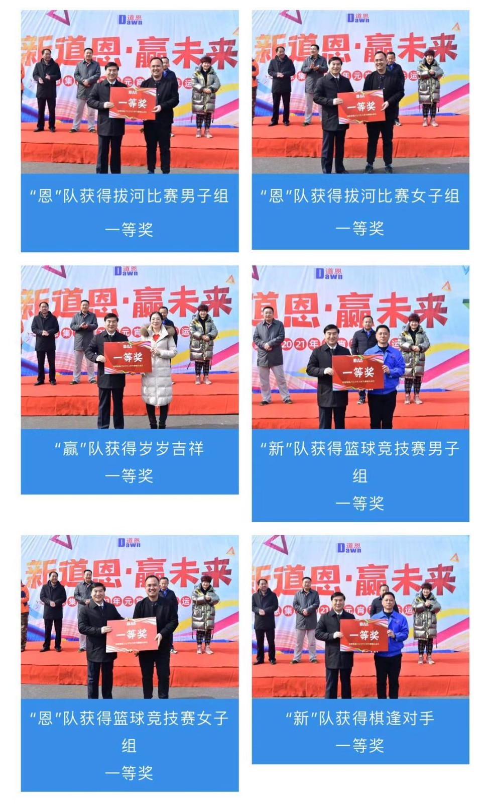 選手們揮灑汗水、拼搏進(jìn)取,觀眾們加油鼓勁、吶喊助威,道恩大學(xué)生公寓體育場變成了一片激情的海洋和歡樂的世界。經(jīng)過各代表隊(duì)的激烈角逐,誕生了各比賽項(xiàng)目的一等獎(jiǎng)、二等獎(jiǎng)和三等獎(jiǎng),道恩集團(tuán)領(lǐng)導(dǎo)班子成員分別為獲獎(jiǎng)代表隊(duì)頒獎(jiǎng)并送上誠摯祝福。