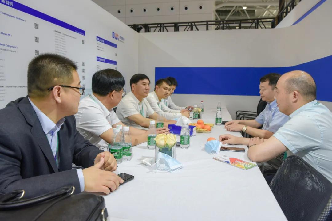 下午,國家能源集團副總裁張繼明蒞臨道恩展位訪問交流,于曉寧董事長向客人介紹了打造產品鏈、產業鏈和企業鏈的情況。張繼明副總裁對道恩的研發能力、產品性能以及硬核抗疫的表現給予積極評價。