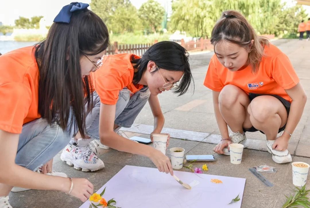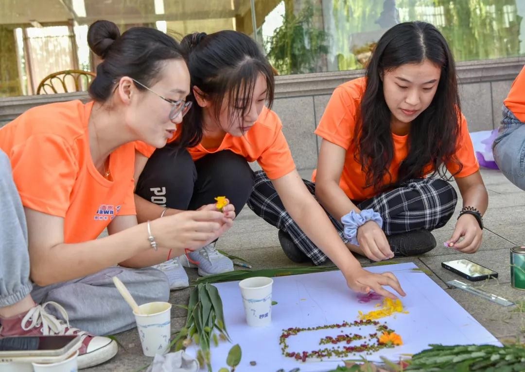 激昂青春志,共筑中國夢。今年恰逢中國共產黨百年華誕,大學生們通過搜集樹葉、豆子、貝殼等材料,手繪特色主題標語,弘愛黨愛國之心,立青春鴻鵠之志,展示了新時代青年學子的新風貌和新力量。大學生們紛紛表示,心有所定、學有所成,將來為社會發展貢獻青春和力量。臨近活動結束之際,同學們在道恩湖畔齊聲喊響:“快樂起航,超越夢想”。這聲音中洋溢著青春,洋溢著激情,更洋溢著對未來大學生活的憧憬與向往。