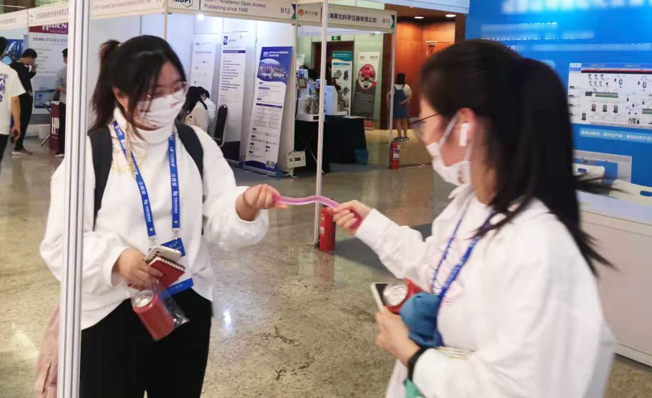 開幕式當天,道恩生物可降解制品、TPV、TPU、HNBR、熔噴料、改性塑料等多款核心產品的亮相,吸引眾多高分子院校、科研機構參觀交流,道恩高材(北京)公司的參展代表與客戶進行了深入溝通。值得一提的是,來自道恩模塑公司的TPE拉力器吸引了眾多客戶駐足體驗。