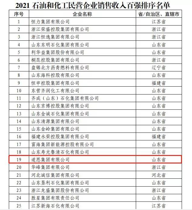 12月28日,2021石油和化工民營企業(yè)發(fā)展大會在線上召開,會上發(fā)布了2021石油和化工民營企業(yè)銷售收入百強排序名單及分析報告,并對國家促進“專精特新”中小企業(yè)政策進行解讀。道恩集團榮列2020中國石油和化工民營企業(yè)銷售收入百強第19位,較去年上升11名。