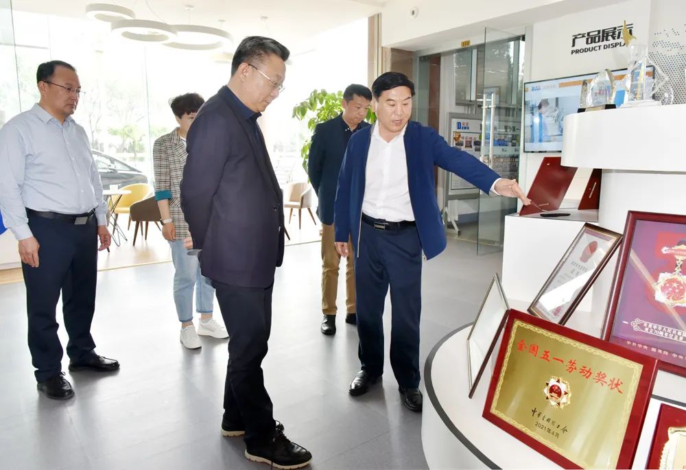 任賢全副總裁一行參觀了道恩集團總部、道恩化學,道恩承建并管理的龍口市新材料科技產業園,以及高分子新材料產業、鈦產業等骨干企業,實地了解道恩的企業發展、園區建設、產業布局、科技研發、市場拓展、產品應用等情況。