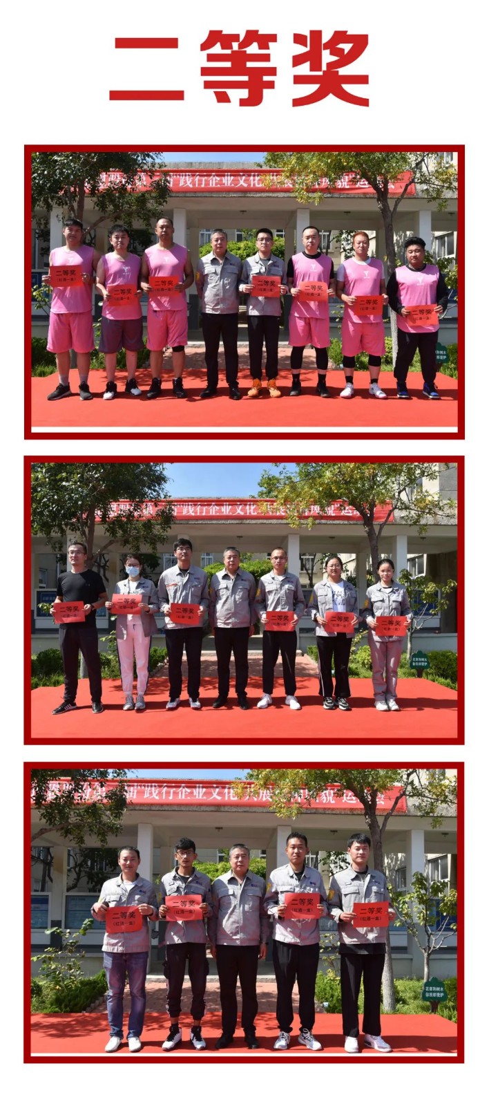 活動(dòng)現(xiàn)場(chǎng),道恩股份班子成員紛紛加入比賽行列,整個(gè)比賽過(guò)程緊張激烈又趣味橫生,贏得了觀眾的陣陣叫好聲。經(jīng)過(guò)一上午激烈而愉快的比賽,最終由大學(xué)隊(duì)獲得籃球比賽、羽毛球女子單打比賽、乒乓球男子單打比賽、接力比賽第一名,超越隊(duì)獲得羽毛球男子單打比賽、羽毛球男女混打比賽、乒乓球女子單打比賽第一名。與會(huì)領(lǐng)導(dǎo)為獲獎(jiǎng)參賽隊(duì)頒獎(jiǎng)并合影留念。