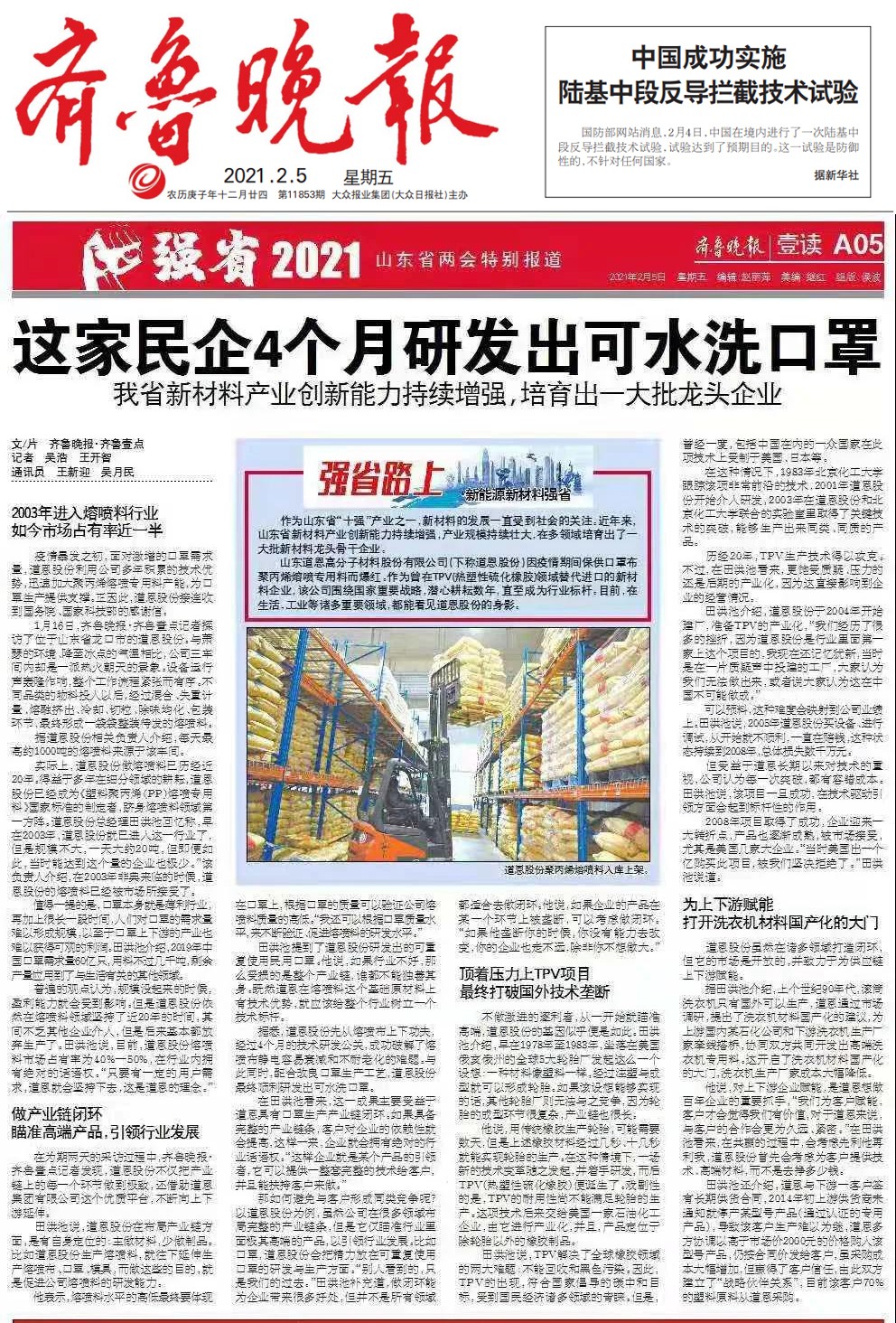 “我們在熔噴專用料領域深耕20年,是《塑料聚丙烯熔噴專用料》國家標準和《可重復使用民用口罩》團體標準的制定單位。”道恩股份副總工程師陳文泉說,在抗“疫”最吃勁的時候,道恩還緊急承擔了國家科技部和北京科委兩項科研項目,同時苦練內功,持續提升產品的品質。