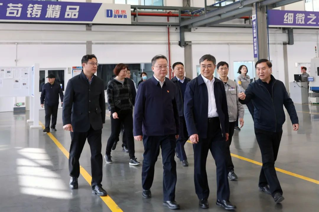 3月9日,煙臺市委常委、組織部部長、統(tǒng)戰(zhàn)部部長高建廣來道恩調(diào)研民營經(jīng)濟統(tǒng)戰(zhàn)工作。煙臺市委統(tǒng)戰(zhàn)部副部長、市工商聯(lián)黨組書記胡衛(wèi)寧等參加調(diào)研。龍口市委書記呂波,市委常委、市高端化工產(chǎn)業(yè)鏈鏈長趙樹杰,市委常委、統(tǒng)戰(zhàn)部部長、副市長潘蒞;市工商聯(lián)主席,道恩集團董事長、總裁于曉寧陪同調(diào)研。