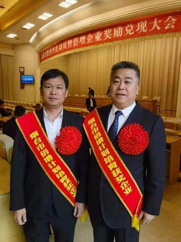 10月23日,煙臺(tái)市委、市政府召開(kāi)決戰(zhàn)決勝四季度動(dòng)員暨倍增企業(yè)獎(jiǎng)勵(lì)兌現(xiàn)大會(huì),道恩集團(tuán)旗下道恩股份公司、道恩鈦業(yè)公司及參股企業(yè)龍港股份公司榮獲倍增計(jì)劃企業(yè)獎(jiǎng)勵(lì)480余萬(wàn)元。道恩股份公司總經(jīng)理田洪池(下圖左)、龍港股份公司董事長(zhǎng)陳培倫,作為企業(yè)家代表上臺(tái)領(lǐng)獎(jiǎng)。