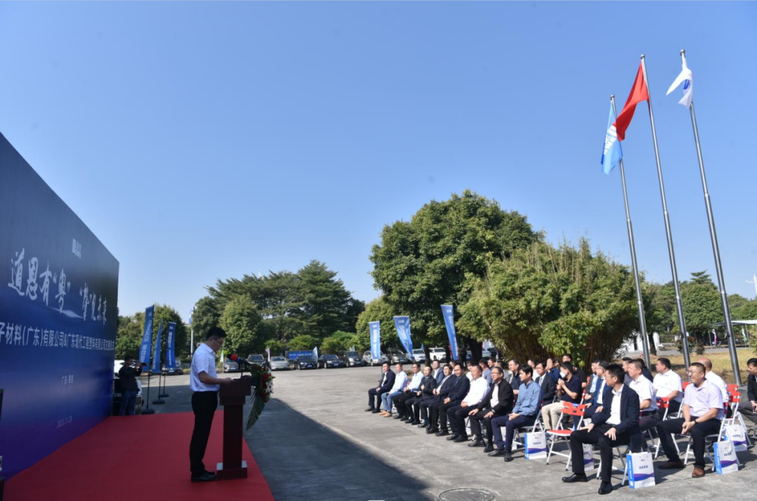 道恩集團副董事長索延輝,副總裁宋慧東,道恩股份總經理田洪池,青島新材料公司總經理譚偉宏,道恩(廣東)公司總經理吳亞文出席活動。肇慶高新區有關部門負責人,原廣東現代工程塑料有限公司法人長金泰相及其團隊,佛山海爾洗衣機、理士電源、小鵬汽車、博仕達新材料等客戶代表,以及道恩集團有關部門、單位員工代表,見證這一歷史性時刻。