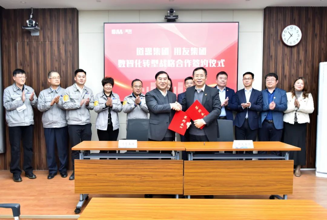12月14日上午,道恩集團與用友集團在山東龍口舉行數(shù)智化轉(zhuǎn)型戰(zhàn)略合作簽約儀式,由此開啟了道恩數(shù)智化轉(zhuǎn)型升級之路。用友集團董事長王文京,道恩集團董事長、總裁于曉寧出席儀式并代表雙方簽署協(xié)議。
